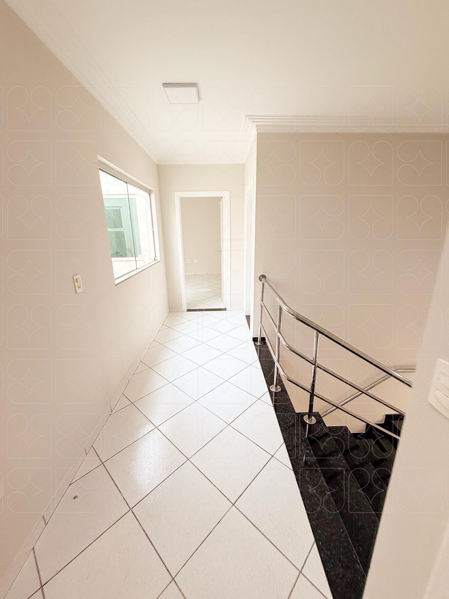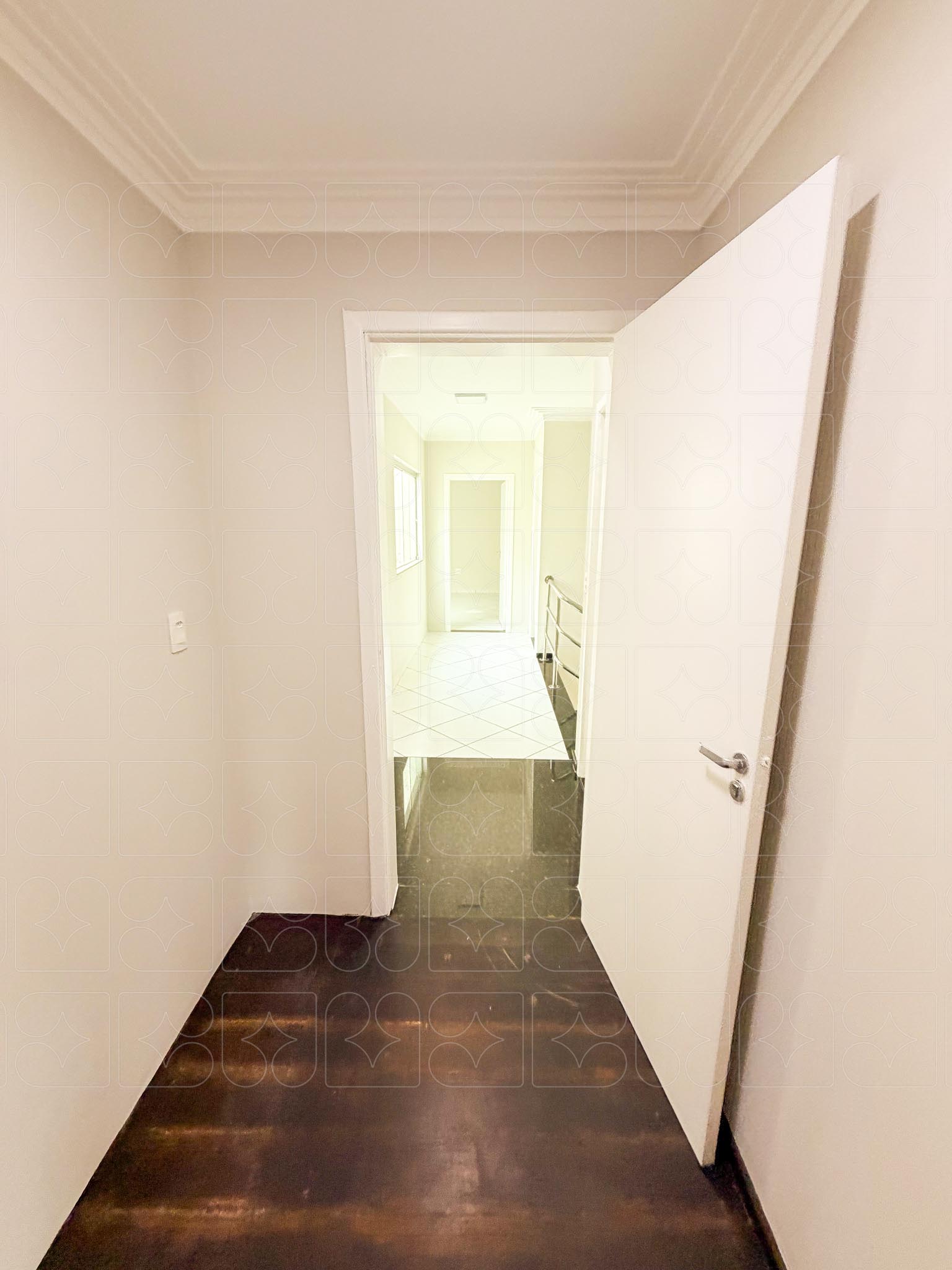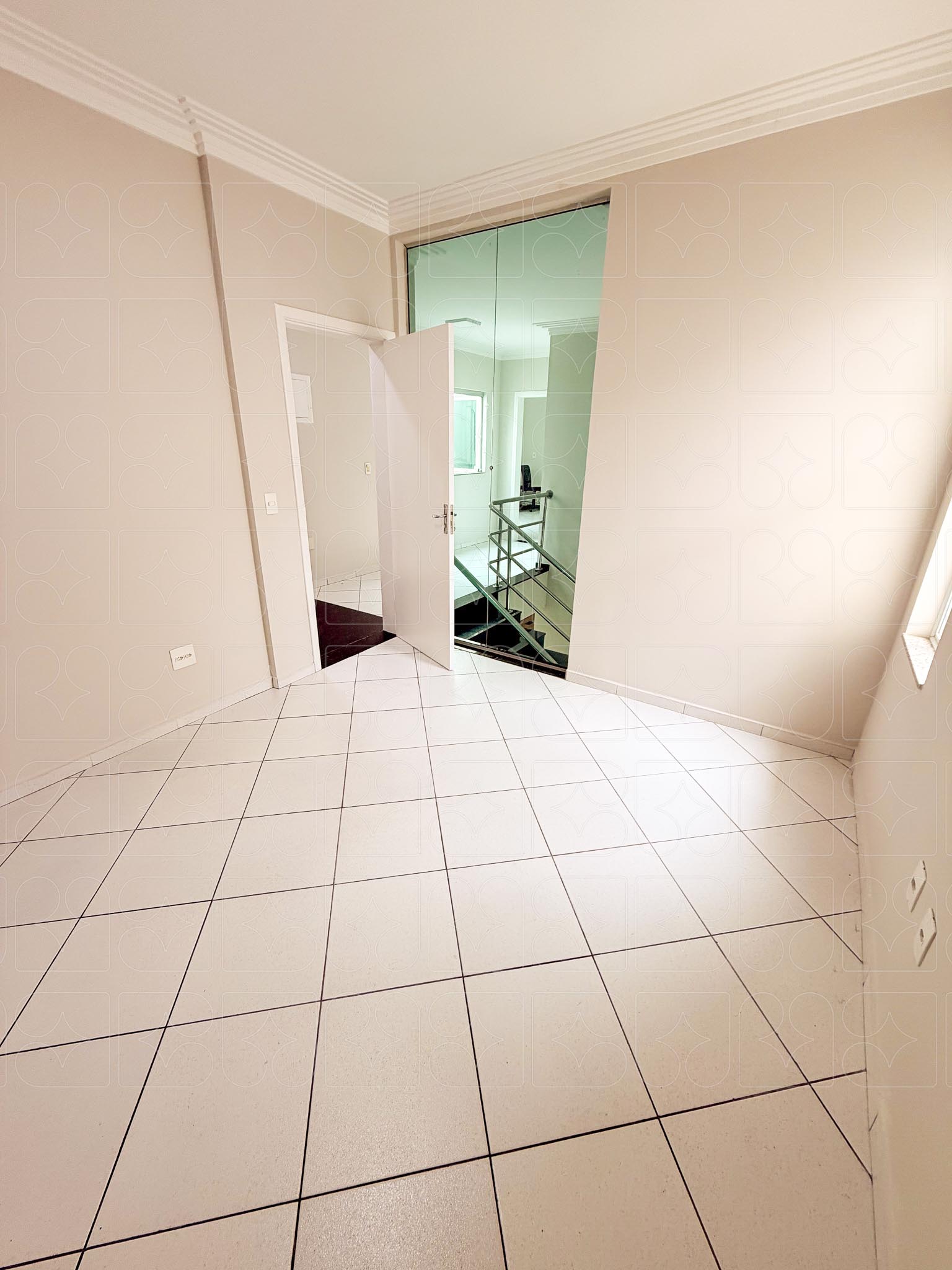 Piso superior: acesso por escada interna; conjunto de salas bem setorizadas, incluindo sala frontal ampla, hall de circulação, salas independentes, além de sala com copa e banheiro.